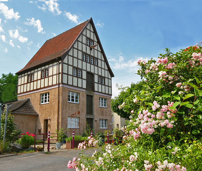 Die alte Wassermühle am Mühlenstrang zeigt sich heute dem Betrachter in der vom Architekten Carl H. Schmitz 1934 neugestalteten Form. Die Mühle was bis nach dem zweiten Weltkrieg noch in Betrieb.