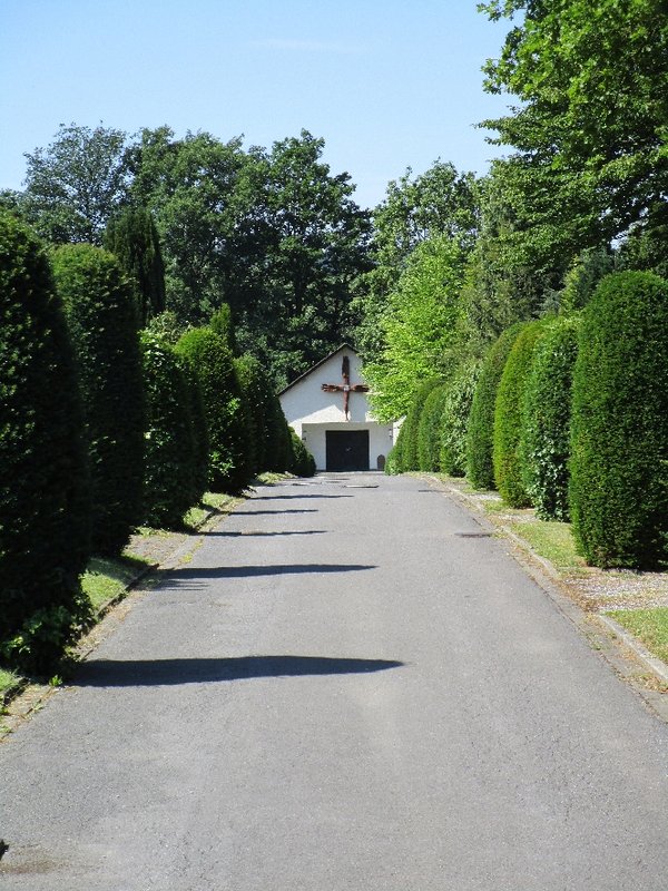 An der Trauerhalle des Friedhofs befindet sich als 4. Station des Ergster Segensweges das Kunstwerk "Segenskreuz" von Jan van Nahuijs (www.segensweg.de).