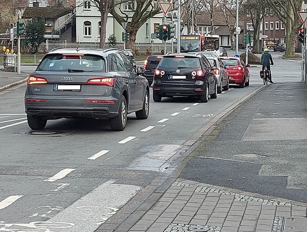 Schwerte. Manchmal geht es gesittet zu an den Ampeln in Schwerte, an denen ein Schutzstreifen für Fahrradfahrer*innen aufgebracht ist. Dann stehen…