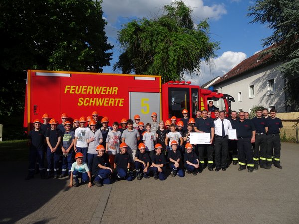 Wilhelm Müller, Leiter der Schwerter Feuerwehr, überraschte jetzt das Team der Jugendfeuerwehr.