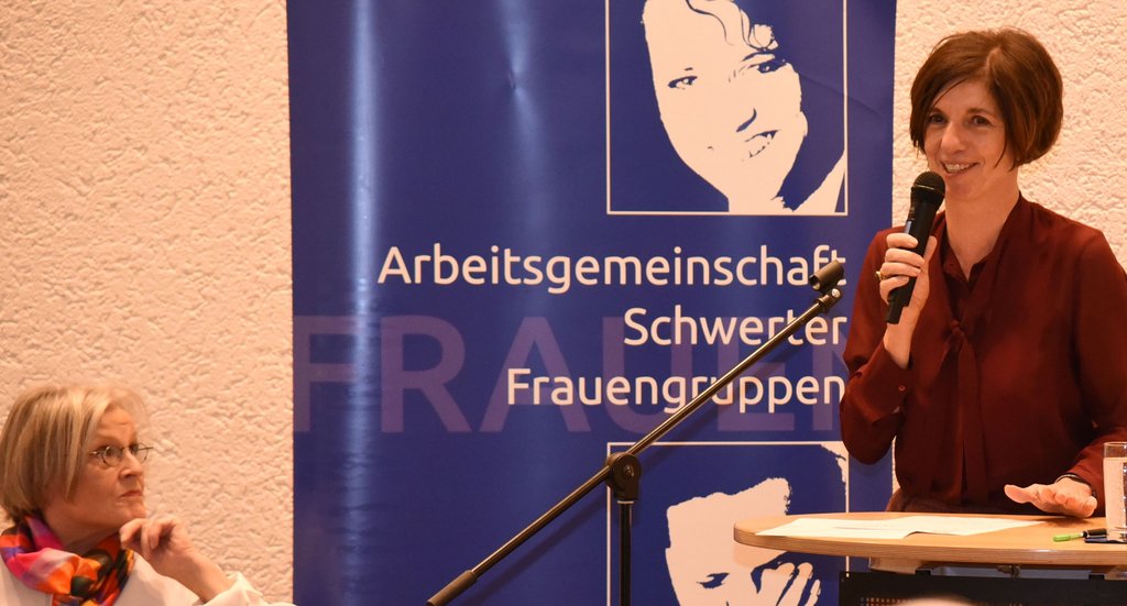 Sie widmete sich der Frage, wie Menschen in Paarhaushalten bezahlte und unbezahlte Arbeit so aufteilen, dass beide ein Stück eigenes finanzielles Leben haben und damit ihre Unabhängigkeit erhalten. In ihren Betrachtungen ging es ihr nicht um Karrierestrategien, sondern um grundsätzliche Fragen gesellschaftlicher Organisation. Die Trägerin des Verdienstkreuzes 1. Klasse des Bundesverdienstkreuzes kam glänzend an bei den Schwerterinnen – vor allem auch, weil sie sich als Anhängerin von Borussia Dortmund outete. Die 63-Jährige hat viele Auszeichnungen erhalten, darunter 2014 den Preis für herausragende Leistungen auf dem Gebiet der öffentlichen Wirksamkeit der Soziologie. „Wir konnten es gar nicht glauben, als wir ihre Zusage auf dem Tisch liegen hatten“, freute sich Birgit Wippermann, Gleichstellungsbeauftragte der Stadt Schwerte.
