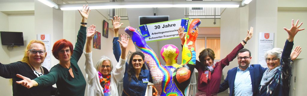 Bürgermeister Dimitrios Axourgos würdigte „den Mut und die Entschlossenheit“ der AG Schwerter Frauengruppen, „mit denen Sie konsequent und stets überparteilich Ihre frauenpolitischen Themen in die Öffentlichkeit getragen haben“. Er sei sehr froh, dass „es hier in Schwerte Frauen gibt, die den Kampf für Gleichberechtigung führen und sich so für die Gleichbehandlung von Frau und Mann einsetzen. Mit jedem Erfolg sorgen Sie für eine gerechter werdende Gesellschaft“.
