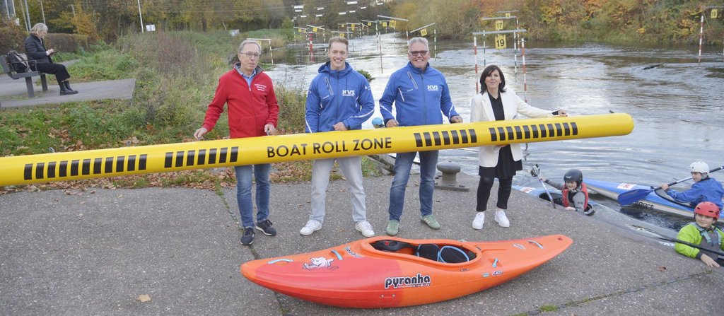 Dabei sollen auch Aspekte eines aufstrebenden Zweigs im Kanuslalom Berücksichtigung finden: dem Kajak Cross. Der Verein würde gerne Voraussetzungen schaffen, diesen Sport auch auf der Ruhr anbieten zu können, berichteten die Vorsitzenden Andreas Schulz und Maxi Lange der städtischen Amtsleiterin Sport, Gabriele Stange, und dem Vorsitzenden des Stadtsportverbandes, Peter Schubert, bei ihrem Besuch des Vereins. Eine Anschaffung für Kajak Cross wurde schon getätigt: eine Barriere, unter der hinweg auf dem Weg zum Ziel eine 360-Grad-Rolle vollzogen werden muss. Mit Tillmann Röller hat der Verein hier ein ganz heißes Eisen im Feuer