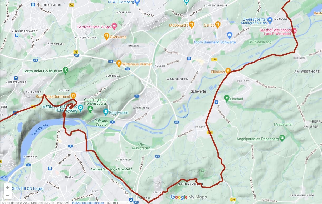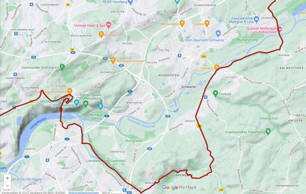 Über die Unnaer Straße und die Straße „Zum Wellenbad“ geht es zur Rheinener Straße, wo kurz das Iserlohner Stadtgebiet gestreift wird. Über die Iserlohner Straße geht es dann zur Kreuzung Ruhrbrücke in Villigst und von dort über die B236 (Letmather Straße) in Richtung Letmathe. Hinter der JVA Schwerte und Hiddemann am Spieck biegt die Deutschlandtour rechts ab nach Tiefendorf und hat da bereits das Hagener Stadtgebiet erreicht. Ziel der dritten Etappe ist Essen.