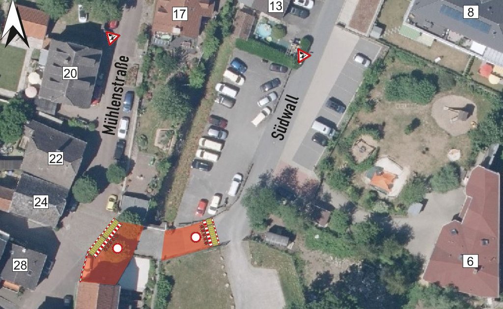 So wird es auch keine fußläufige Verbindung mehr vom Südwall in die Mühlenstraße und umgekehrt geben. Der Durchgang und die Durchfahrt über die Brücke über den Mühlenstrang sind nämlich gesperrt. Auf den gesperrten Flächen wird ein Kran aufgebaut werden bzw. wird Material gelagert – beides allerdings nicht direkt auf der Brücke. Die Maßnahme soll bis zum 31. Mai 2022 dauern.