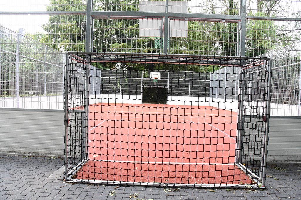 Entstanden ist ein hochwertiger Bolz- und Basketballplatz mit Ballfangzäunen und einem Bandensystem auf einem Tartanbelag. Dieser Untergrund ist im Gegensatz zur ehemaligen Wiese wetterfest und lässt auch bei nasser Witterung eine sportliche Betätigung zu. Rund 180.000 Euro hat die Stadt in diese Anlage investiert. „Wir haben ganz bewusst die Aufenthaltsqualität auch an diesem Standort erhöht und bieten mit dem neuen Platz mehr Möglichkeiten einer sportlichen Freizeitbetätigung. Der Bolz- und Basketballplatz ist der Auftakt einer ganzen Reihe von positiven Veränderungen an diesem Standort“, hebt Bürgermeister Dimitrios Axourgos hervor.