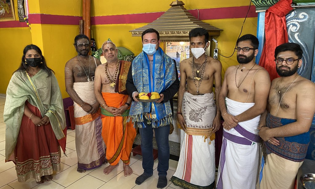 Beim Besuch betont Bürgermeister Dimitrios Axourgos: „Die Hindu-Gemeinde in Schwerte ist ein wichtiger, kultureller Teil dieser Stadt und fest verankert“, und beglückwünscht die Gemeinde zu den Feierlichkeiten.