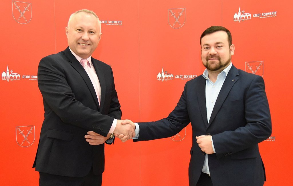 Seit 2018 ist Ludomir Handzel Bürgermeister von Schwertes Partnerstadt Nowy Sacz. Damit ist der Bürgermeister der etwa 84.000 Einwohner*innen zählenden Stadt in der Region Kleinpolen im Süden des Landes seit demselben Jahr im Amt wie sein Kollege Dimitrios Axourgos. Bei den Kommunalwahlen am 7. April wurde er mit einem deutlichen Ergebnis von 52,3 % im ersten Wahlgang wiedergewählt. Bürgermeister Axourgos gratuliert dem neuen und alten Bürgermeister der Partnerstadt in einem offiziellen Schreiben. „Es freut mich, dass wir in Schwerte weiterhin einen verlässlichen Partner haben, der eine moderne und weltoffene Politik voranbringt“.