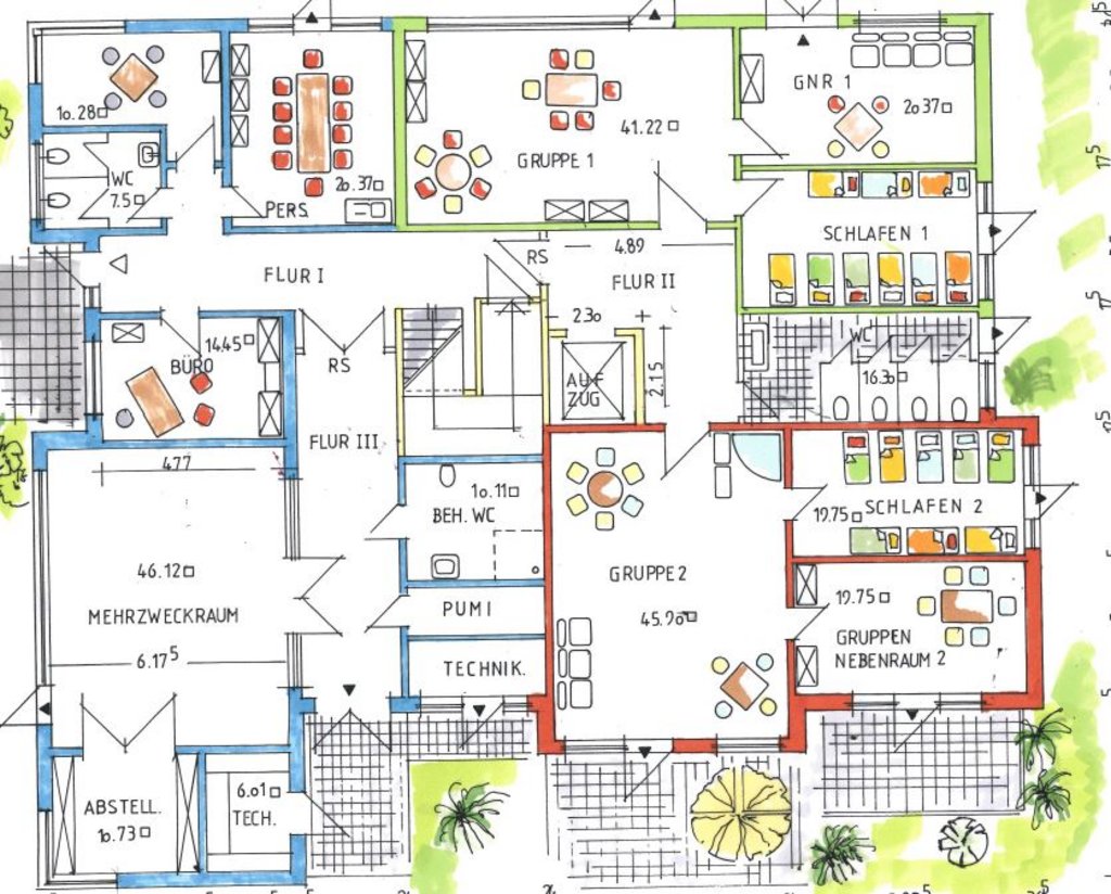 Entstehen soll eine moderne Kindertagesstätte für vier Gruppen über zwei Geschosse. Sie ist nach neuesten Erkenntnissen konzipiert, verfügt im Erdgeschoss über einen Mehrzweckraum und hat im Obergeschoss eine geräumige Turn- und Bewegungshalle. Direkt daneben befindet sich die Küche mit einem Essensraum für alle vier Gruppen. Alle Gruppenräume sind ausgestattet mit den Schlafräumen. „Für uns ist das ein erster Entwurf“, erklärte die städtische Architektin Bettina Austmeyer, die Feinabstimmung komme noch und werde mit den Mitarbeiterinnen der KiTa sowie den Eltern vorgenommen.
