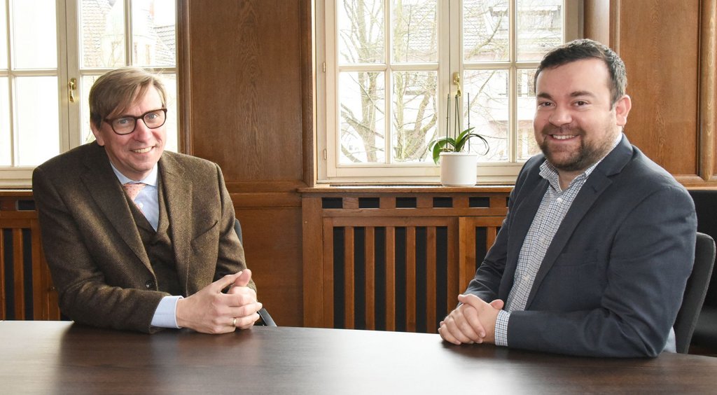 Mit Bürgermeister Dimitrios Axourgos sprach der 1964 in Dortmund geborene Sacher über aktuelle Themen wie Herausforderungen in Europa, den Krieg in der Ukraine und die Probleme der Kulturschaffenden.