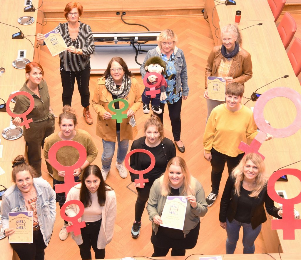Gemeinsam mit der Gleichstellungsbeauftragten der Stadt Schwerte, Birgit Wippermann, konzipierten Lea Schneider, Elena Schmidt und Caro Neumann den Mädchentag. „Es ist eine bunte Mischung geworden“, sagt Birgit Wippermann, an der sich noch die Kooperationspartner*innen Bundesagentur für Arbeit, das Jobcenter, RSA Cutting Technologies GmbH und zidi-Netzwerk-Perspektive der Wirtschaftsförderug im Kreis Unna, Faktor Ruhr, die Schwerter Mitte, die Tanzschule Thiele, die Beratungsstelle für Schwangerschaft und Frühe Hilfen der Diakonie Schwerte, das Frauenforum Kreis Unna, der Türkische Elternverein und die Stadtbücherei beteiligen.