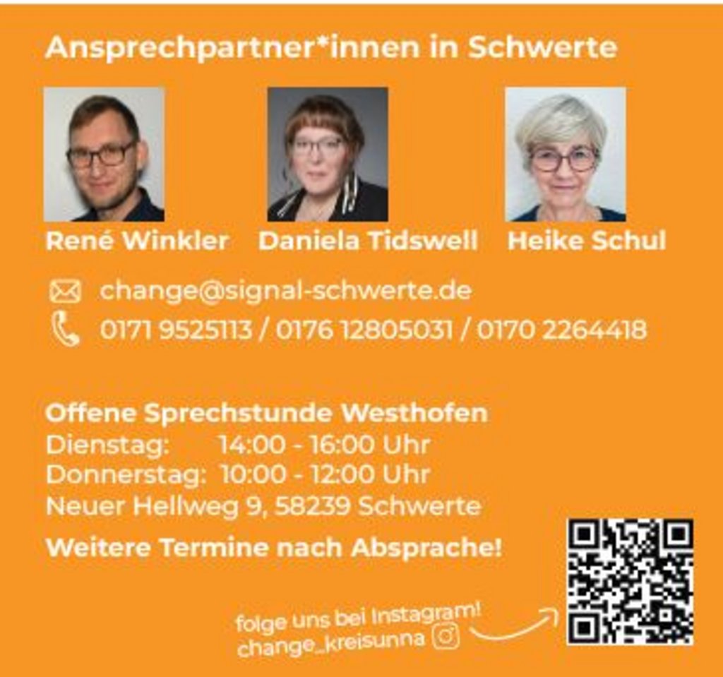 Koordiniert wird das Projekt von Katarina Spigiel, Sozialraumplanerin der Stadt Schwerte. Sie betont: „Das Chan!Ge Projekt verbindet konkrete Beratung mit neuen Möglichkeiten der Begegnung – für Unterstützung im Alltag und mehr Miteinander in Schwerte.“