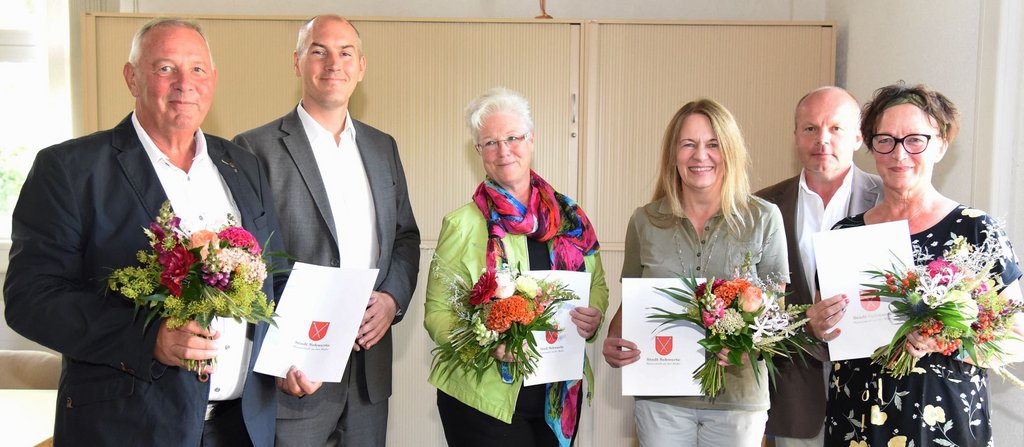In den Ruhestand verabschiedet wurden Regina Kamprad, Petra Riße und Friedhelm Ewald. Regina Kamprad war Teil „der unglaublich guten KiTa-Landschaft in Schwerte und Mitglied in einem engagierten Team“, so Tim Frommeyer. Sie trat am 2. Januar 1985 in den Dienst der Stadt Schwerte und war für alle in den einzelnen Gruppen anfallenden pädagogischen sowie pflegerischen Aufgaben zuständig.