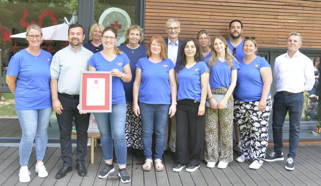 Michael Makiolla, Präsident des DRK-Kreisverbandes, würdigte die 40-jährige Zusammenarbeit mit der Stadt Schwerte und beschrieb, wie aus einer zunächst als Übergangslösung gedachten KiTa eine feste und berechenbare Größe geworden ist. Dimitrios Axourgos richtete in diesem Zusammenhang noch Worte an die Eltern. „Sie tragen zu dieser dauerhaften Lösung ebenso bei wie das Generationen von Eltern vor Ihnen getan haben, weil Sie diesem Haus mit großer Wertschätzung begegnen. Das ist der Grundstein für den Erfolg dieser Einrichtung.“ Er überreichte Karin Geyer eine Urkunde der Stadt Schwerte.