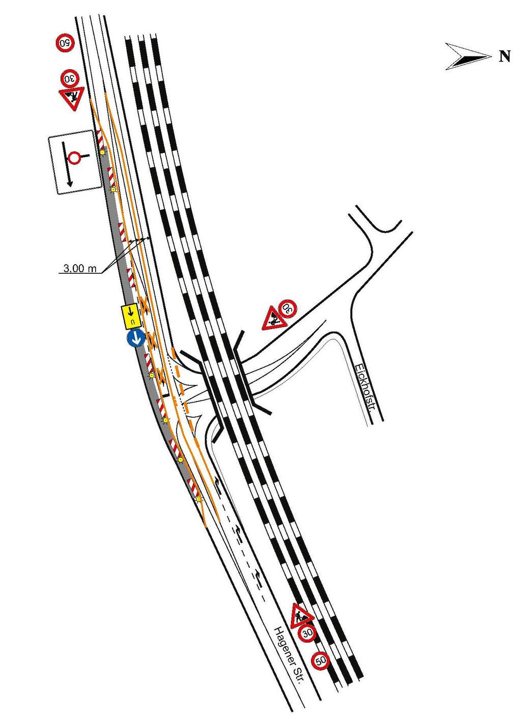 Auf der Hagener Straße wird vom 30. September an in Höhe der DB-Brücke eine Fahrspur eingezogen. Das macht das Linksabbiegen aus Richtung Garenfeld kommend an dieser Stelle unmöglich. Die Umleitung erfolgt über den Kreisel in Westhofen; sie führt den Verkehr über den Kreisel wieder zurück zur Baustelle, wo das Rechtsabbiegen möglich ist. In diesem Bereich wird die Straßenoberfläche wieder hergestellt. Die Maßnahme ist schnell beendet und dauert nur bis zum 2. Oktober.