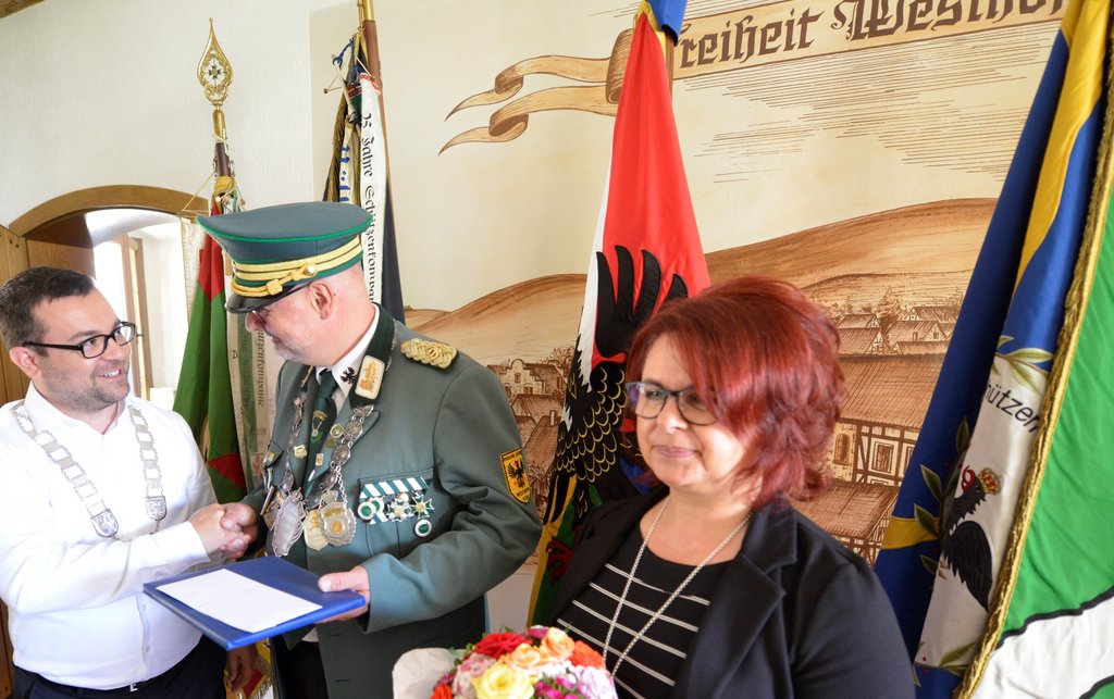 Auch Ralf Jürgens, Vorsitzender der Schützenbürgerwehr Freiheit Westhofen, würdigte die Verdienste des scheidenden Königspaares. Ihre Amtszeit sei von Herzlichkeit und Nähe geprägt gewesen, "die beiden waren ein hervorragendes Aushängeschild des Westhofener Schützenwesens und ein König und eine Königin zum Anfassen". "Für uns war das eine riesige Freude", unterstrich Matthias Rohde.