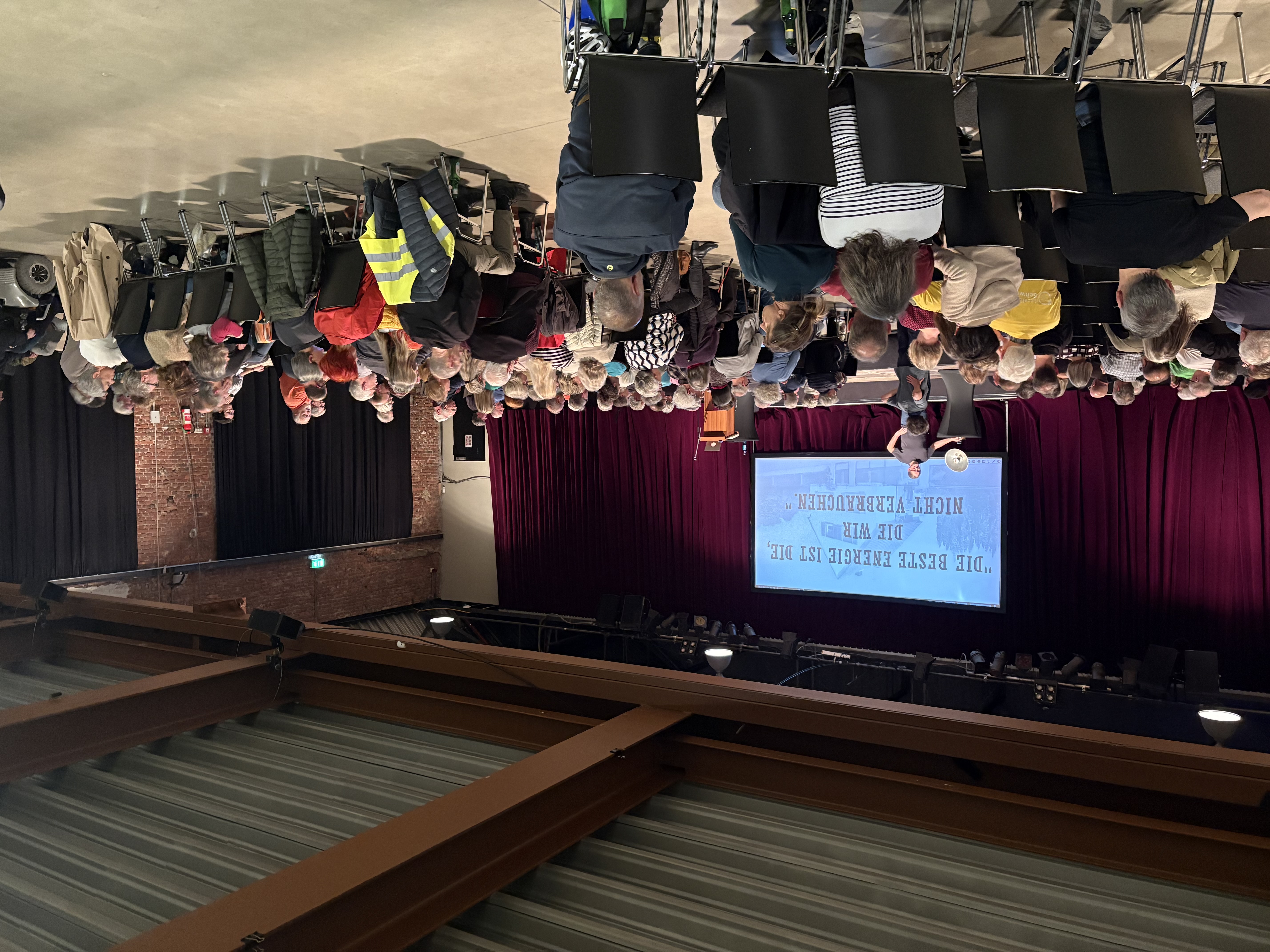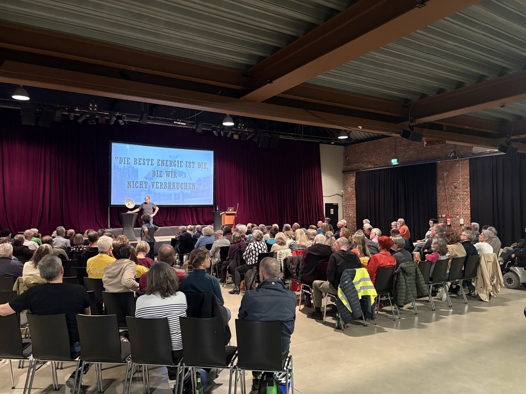 Rund 170 Bürger*innen waren in die Rohrmeisterei gekommen und konnten sich neben dem Vortrag des Energiesparkommissars auch über lokale Initiativen und deren Engagement informieren. Die Veranstaltung ist Teil einer Reihe von Aktionen, die vom Arbeitskreis Engagierte Stadt organisiert werden.