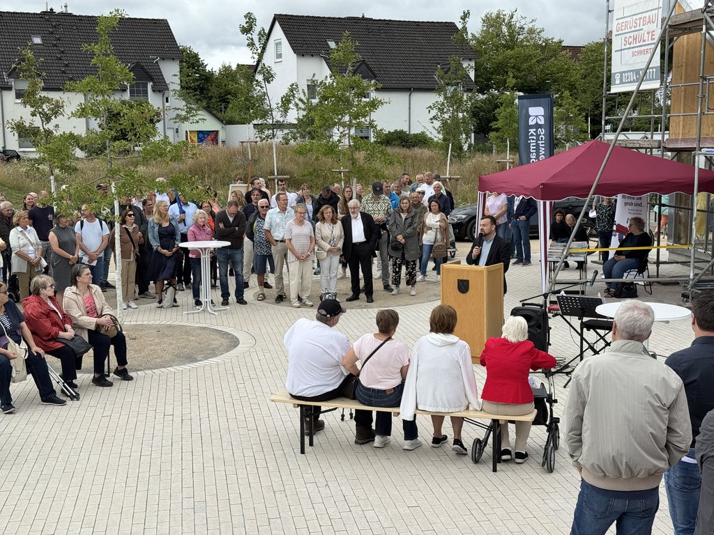 Bürgermeister Dimitrios Axourgos eröffnete den Klimagarten feierlich und begrüßte zahlreiche Besucher*innen im neu entstandenen „Grünen Klassenzimmer“. „Ich wünsche mir, dass viele Schwerterinnen und Schwerter diesen Ort zu ihrem Ort machen – sei es beim Spazieren, beim Gärtnern, beim Lernen oder einfach beim Verweilen“, so Axourgos in seiner Eröffnungsrede.