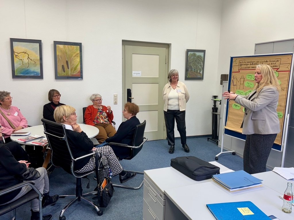 Ein zentraler Bestandteil des Fachtags war der Fachvortrag von Dr. Stephanie Lechtenfeld vom Landeszentrum Gesundheit Nordrhein-Westfalen. Sie stellte wirksame Ansätze zur Prävention von Einsamkeit vor und präsentierte zwei praxisorientierte Projekte: „Gesundheitsbegleitung – ein Peer-to-Peer-Ansatz“ sowie „Miteinander digital – Förderung von Digitalkompetenzen zur Vermeidung von Einsamkeit“. Die Beispiele zeigten anschaulich, wie durch niedrigschwellige, partizipative und digitale Angebote soziale Teilhabe nachhaltig gestärkt werden kann.