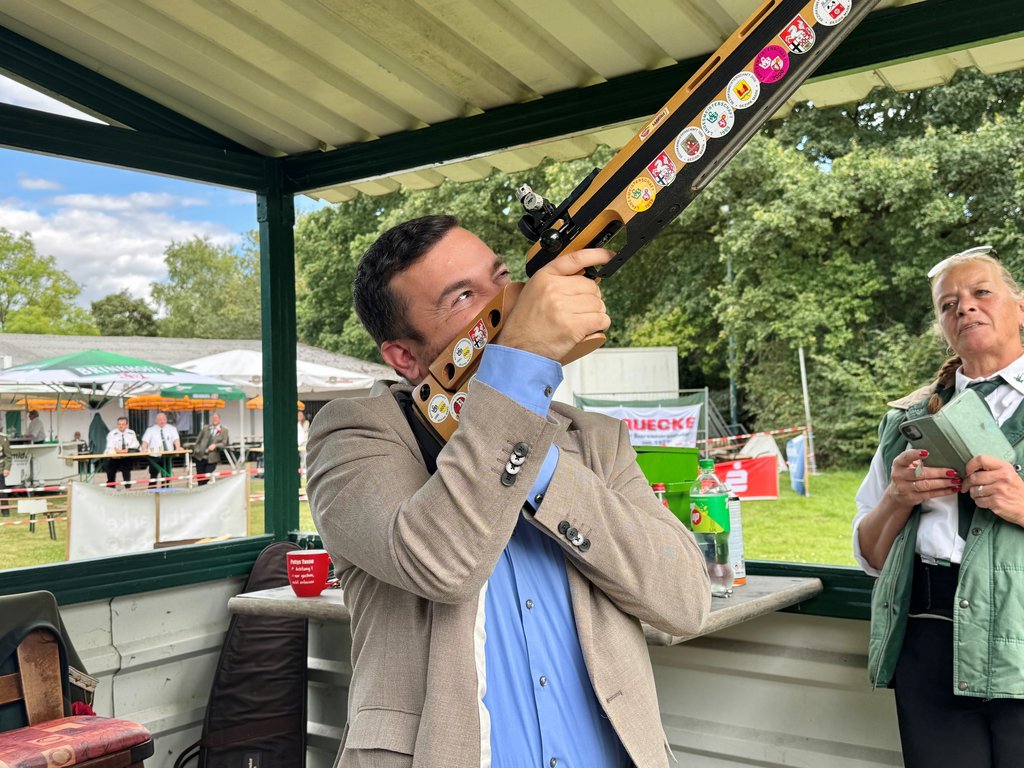 Traditionell eröffnete Bürgermeister Dimitrios Axourgos das Königsschießen und leitete damit den Auftakt des Schützenfestes ein.