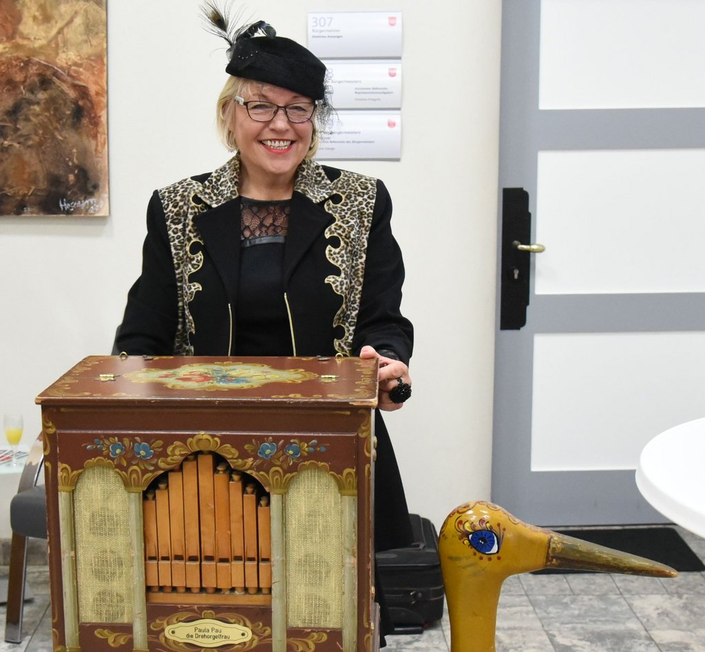 Britta Buschfeld als neue Geschäftsführerin des Frauenforums Kreis Unna referierte, die Leierkastenfrau Paula Pau sorgte für den musikalischen Rahmen.