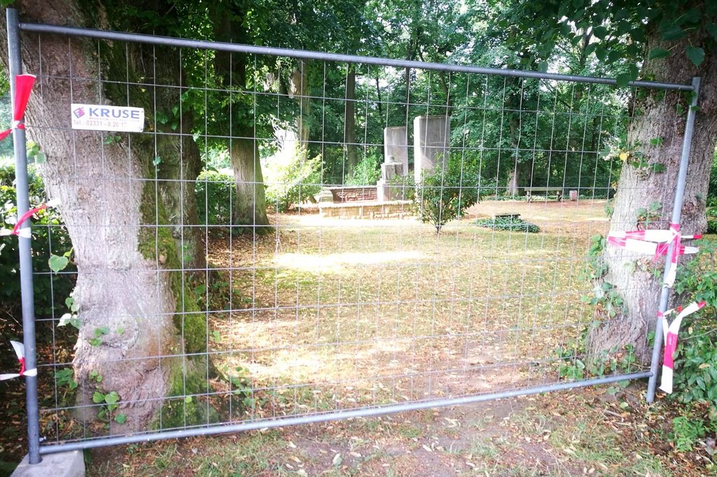 Ergste. Ein Besuch der Gedenkstätte Ehrenmal ist derzeit nicht möglich. Die Stadt hat den Bereich abgesperrt und durch Bauzäune gesichert. Der Grund: Bei einer Inspektion der Bäume rund um das Ehrenmal wurde Totholz festgestellt, das herunterstürzen könnte. Somit ist die Sicherheit von Besucher*innen der Gedenkstätte nicht gewährleistet. Aus diesem Grund wird nun in nächster Zeit eine genaue Bestandsaufnahme durch einen Baumkontrolleur erfolgen. Danach muss das Totholz entnommen werden. Bis zum Abschluss dieser Arbeiten bleibt die Gedenkstätte abgesperrt.