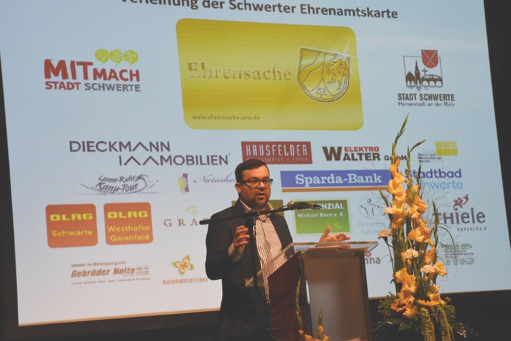 Bürgermeister Dimitrios Axourgos würdigte in seinem Grußwort das Ehrenamt. „Die Ehrenamtskarte NRW ist ein Symbol der Anerkennung und Wertschätzung von ehrenamtlichem und bürgerschaftlichem Engagement“, hob er hervor. „Die Stadt Schwerte, aber auch das Land NRW bedanken sich bei den überdurchschnittlich engagierten Personen für ihre unentgeltliche erbrachte Leistung für das Gemeinwohl“. Gleichzeitig dankte der Bürgermeister allen Unterstützer*innen, die das Projekt mit zahlreichen Vergünstigungen für die Besitzer*innen der Ehrenamtskarte unterstützen.