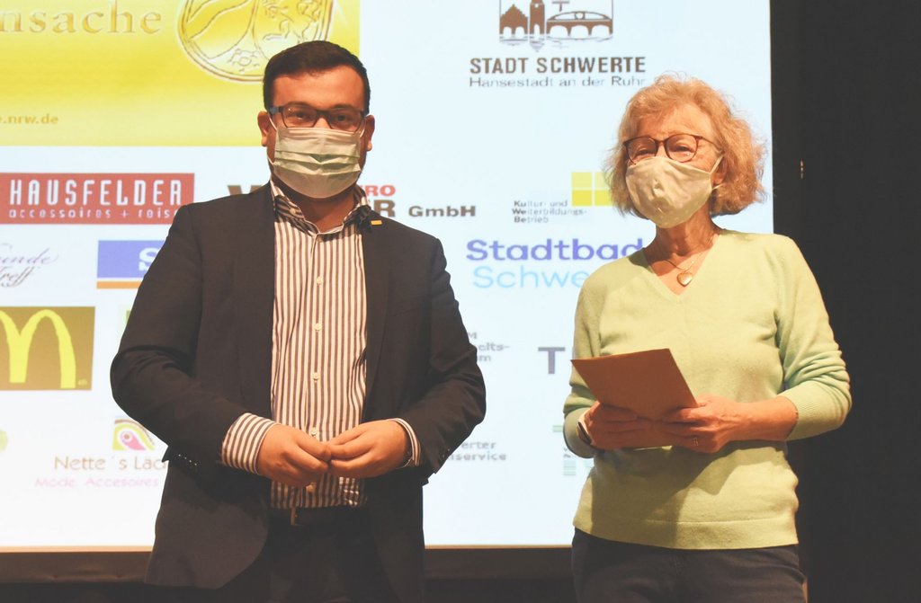Für vier Menschen gab es besondere Erwähnungen: Wolfgang Brandt (Billardclub BW Schwerte) und Christel Timmer (Evangelische Kirchengemeinde), beide Jahrgang 1937, sind die beiden ältesten Ehrenamtskarteninhaber*innen. Wolfgang Brandt leistet schon seit 61 Jahren ehrenamtliche Arbeit für seinen Verein. Die beiden jüngsten Ehrenamtskarteninhaber*innen sind 17 Jahre jung und heißen Karolin Wuttkowski (DLRG Schwerte) und Torben Kleingries aus dem Löschzug Westhofen der Freiwilligen Feuerwehr.