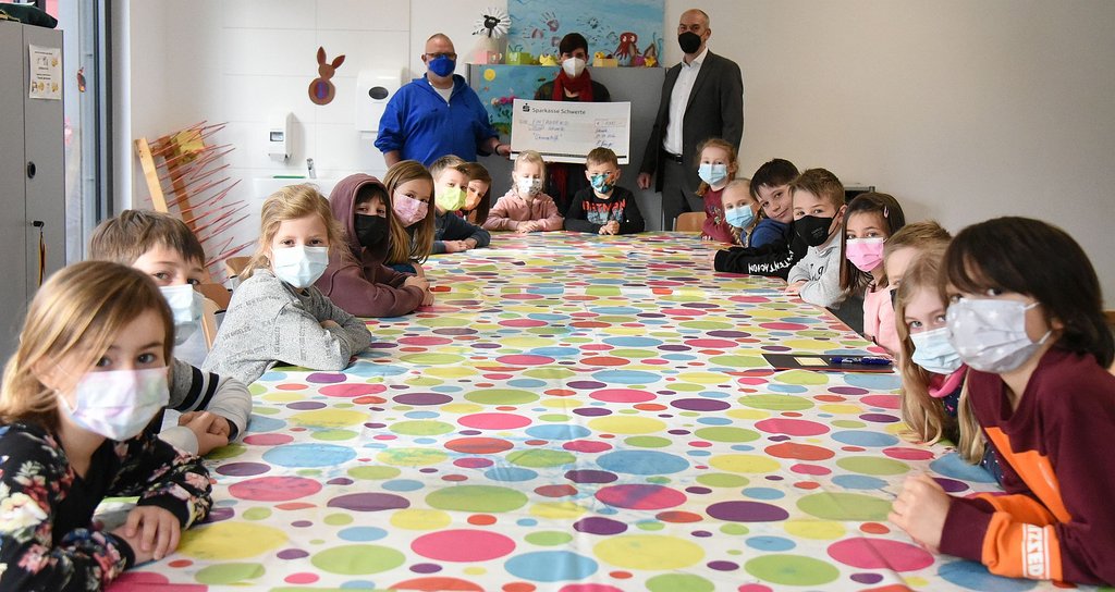 „Ich finde es wirklich supertoll, dass ihr diese Idee der Unterstützung hattet und sie auch so umgesetzt habt“, sagte Tim Frommeyer. „Das ist eine richtig schöne Sache!“ Er versprach, von dem Geld Spielzeug und kleinere Spielgeräte für die Kinder aus der Ukraine anzuschaffen, die den Weg aus dem Kriegsgebiet nach Schwerte gefunden haben.