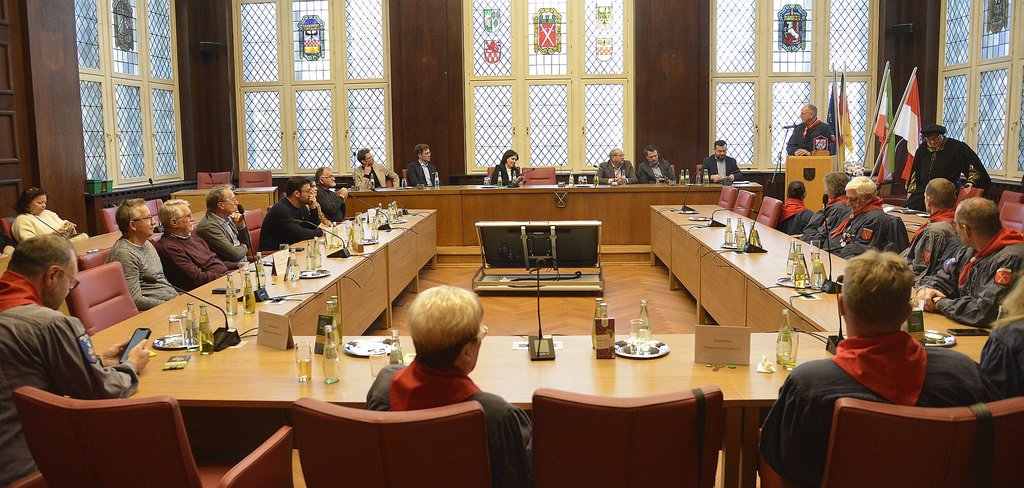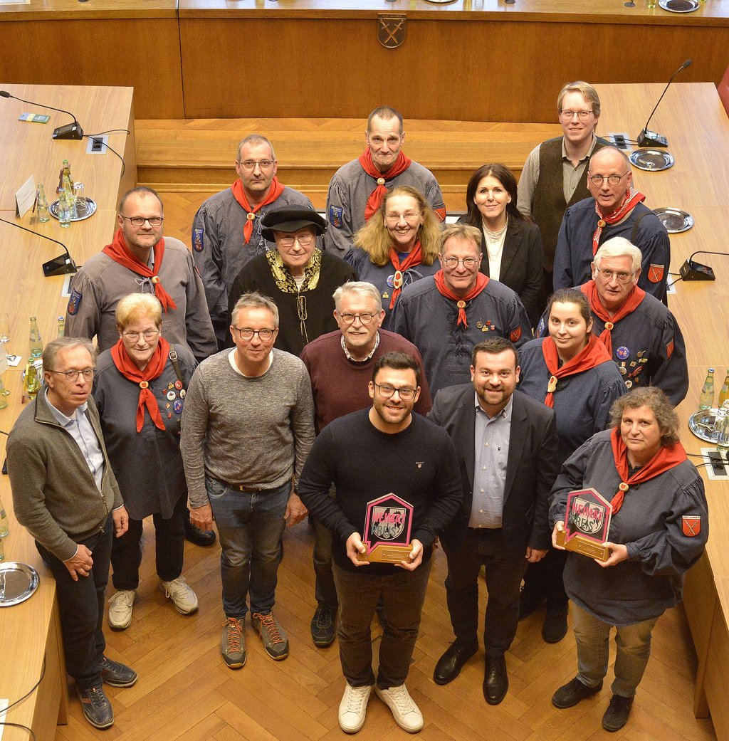 Eine besondere Würdigung erfuhr Herbert Dieckmann, Ehrenvorsitzender des Hansevereins, der lange Zeit dem Verein vorstand. Der Bürgermeister erinnerte an die Projekte des Vereins, „die alle die Heimat Schwerte in den Mittelpunkt rücken“. Die Auszeichnung erhielt der Hanseverein für dir Organisation des Pannekaukenfestes. „Sie bringen damit ein Stück Heimatgeschichte unter die Leute“, sagte Dimitrios Axourgos. „Ihre ehrenamtlichen Kräfte haben diese Auszeichnung verdient“. Thomas Buhl, Vorsitzender des Hansevereins, betonte, die Organisation eines so großen Festes seit weitaus mehr als einfach nur für Musik und Getränke zu sorgen. „Wir freuen uns sehr über diesen Preis. Er wird einen Ehrenplatz erhalten“.