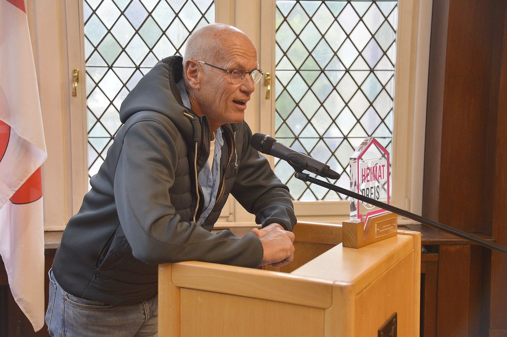 Platz eins ging in diesem Jahr an die Geisecker Streuobstwiese. „Dieses Projekt ist ein mustergültiges Beispiel für gemeinschaftliche Heimatpflege und wird getragen von einem gerade in Zeiten wie diesen so wichtigen ökologischen Bewusstsein getragen“, unterstrich Dimitrios Axourgos. Im Projekt von Udo Edelmeier geht es nicht nur um Apfelernte und Apfelsaft, es geht um das Bewahren lebenswichtiger Grundlagen, um die Förderung von Artenvielfalt über den Bau von Lebenstürmen und um Bienen.
