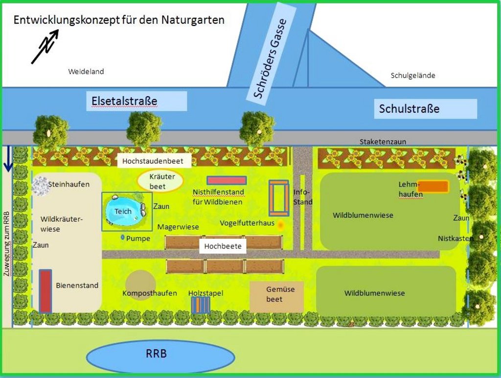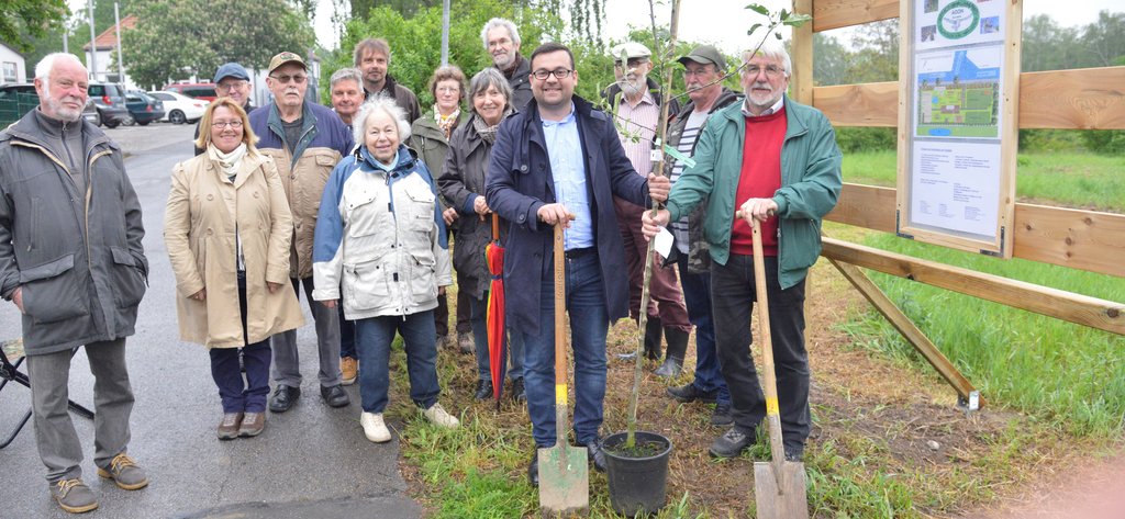 "Das ist ein Projekt, das die Stadt Schwerte gerne unterstützt", sagte Dimitrios Axourgos. "Ich finde es gut, dass die benachbarte Schule und der Kindergarten einbezogen werden. Kinder könne so sehr nahe Natur erleben. Das Gesamtpaket war so überzeugend, dass wir gerne ja gesagt haben". Jetzt kann im Bereich zwischen Sportplatz und Tennisheim ein Naturgarten entstehen und mit verschiedenen Blühstreifenmischungen sowie mit diversen Stauden und Kräutern bepflanzt werden, um durch eine bunte Pflanzenvielfalt den Bienen, Hummeln, Wildbienen und anderen Insekten sowie an einem Teich auch den Libellen und Amphibien ausreichend Lebensraum, Nistmöglichkeit und Nahrungsangebot zu schaffen. Ein Gravensteiner Apfelbaum wurde bereits gepflanzt.