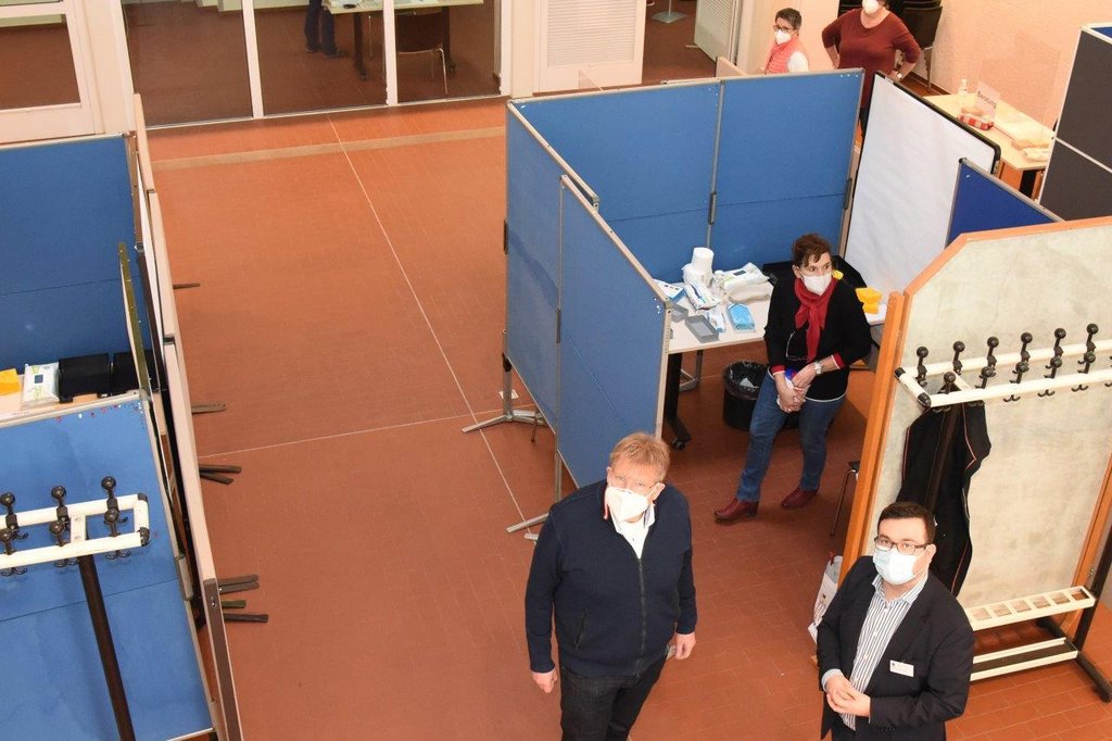 Die Impfungen von Lehrer*innen, Erzieher*innen und weiteren erwachsenen Personen aus Schulen und KiTas sind in engem Kontakt vom Kreis Unna und der Stadt Schwerte organisiert worden. Theo Spanke, Arzt aus Schwerte und Leiter des Impfzentrums des Kreises Unna, lobte in diesem Zusammenhang die Stadtverwaltung. „Die zuständigen Mitarbeiter*innen haben alles möglich gemacht, was möglich gemacht werden konnte“, sagte Theo Spanke, der nach einer ersten Besichtigung der Räumlichkeiten schnell der Meinung war, dass der Bürgersaal ideale Voraussetzungen mitbringe, um einen Impfmarathon wie diesen gut über die Bühne zu bringen.