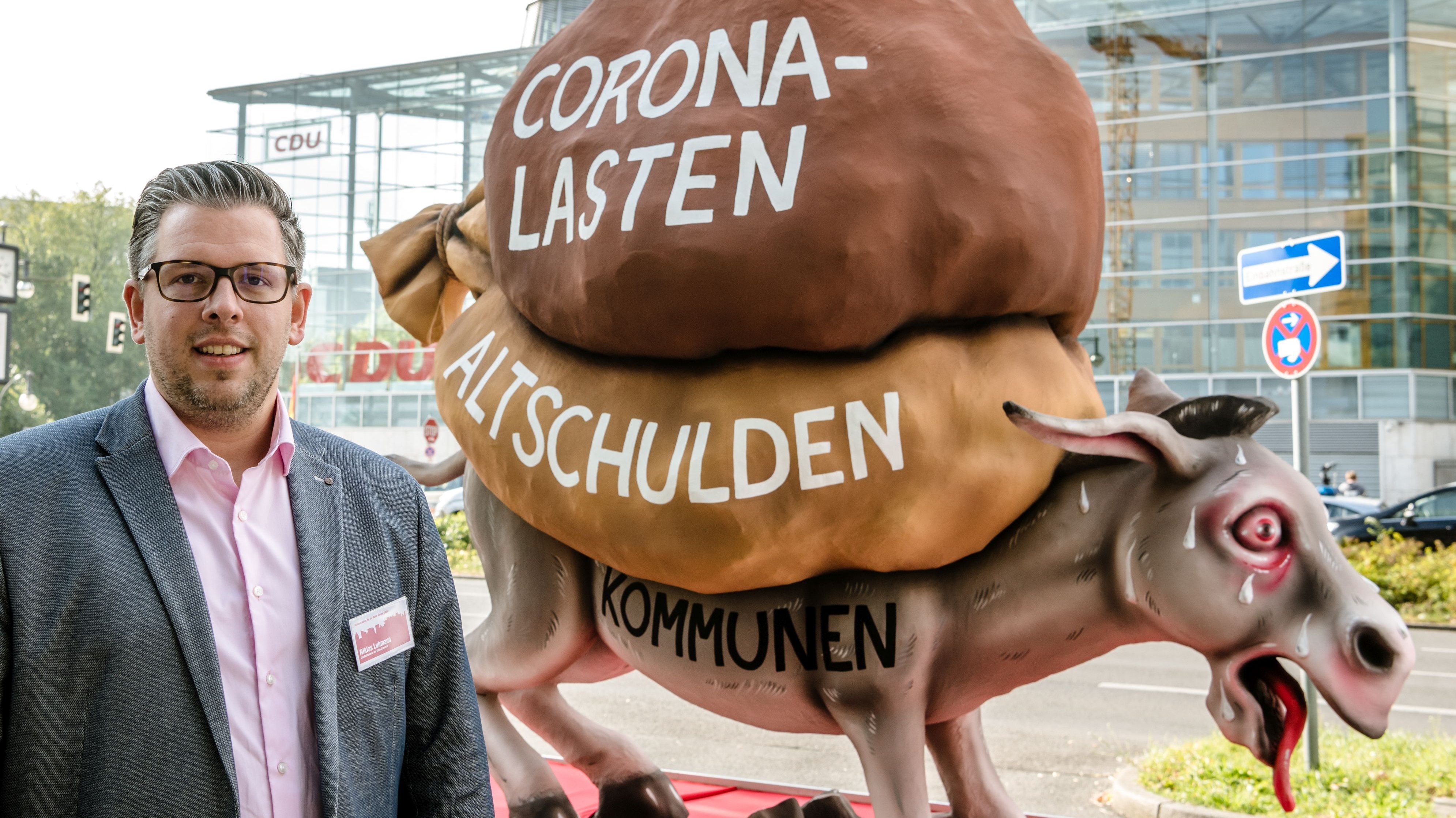 Deshalb war in Berlin überlebensgroß ein Esel auf einem Wagen zu sehen, der gewaltige Säcke auf dem Rücken trug, die ihn in die Knie zwingen. Die Vertreter:innen der Kommunen überreichten den Parteien CDU/CSU, SPD, Grüne, FDP und Linke symbolisch einen Stein aus dem Lastensack. Darauf steht: Deutschland braucht für seine Zukunftsaufgaben handlungsfähige Kommunen.