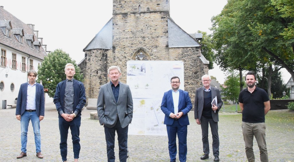 Am Dienstag präsentierte Bürgermeister Dimitrios Axourgos den Siegerentwurf im Büro der Mitmachstadt am Markt, begleitet vom Technischen Dezernenten Christian Vöcks, Christian Heppner aus dem Planungsamt der Stadt und dem Juryvorsitzenden Prof. Gerd Aufmkolk. Anwesend waren auch Prof. Wigbert Riehl und Marcel Spieß vom Wettbewerbssieger. „Das Herz der Stadt wird eine deutlich höhere Aufenthaltsqualität erfahren und die Attraktivität des Marktplatzes steigern. Der Siegerentwurf hat sowohl die fünf externen Fachjuroren als auch die vier Schwerter Vertreter aus Politik und Verwaltung überzeugt“, freute sich das Stadtoberhaupt über das gelungene Projekt, das durch den Schulterschluss von Verwaltung und Politik und unter Beteiligung der Öffentlichkeit entstehen konnte. 3,5 Millionen Euro soll das Projekt kosten und vom Land gefördert werden.