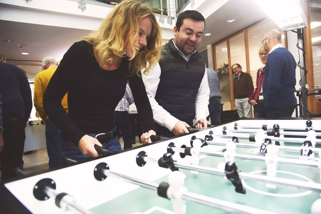 Kickerturniere wie dieses veranstaltet die Volksbank Castrop-Rauxel schon seit Jahren. "Daran haben wir uns ein Beispiel genommen", erklärt Lars Kessebrock, Leiter der Schwerter Volksbank-Filiale, der das Turnier gemeinsam mit dem Rotary-Club auf die Beine gestellt hat. Der Kontakt zu den professionellen Veranstaltern "Mein Kicker" aus Köln war schnell hergestellt. Ebenso schnell flatterten die Rückmeldungen auf den Tisch der von der Volksbank eingeladenen Teilnehmer*innen.