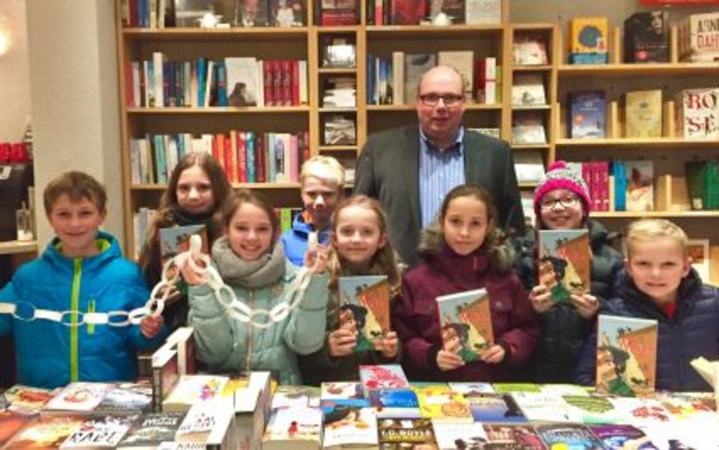Im Anschluss besuchten einige Kinder Olaf Bachmann von Bücher Bachmann und ließen sich von ihm das Buch "Merjem" vorstellen, aus welchem die Autorin Dr. Susanne Schmidt am Vorlesetag für Bücher Bachmann im Café Wellenbrecher um 16 Uhr vorliest.