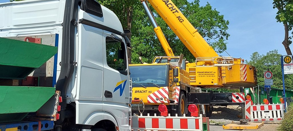 Im Zusammenhang mit dem notwendigen Abriss und dem Neubau der großen Brücke am nördlichen Ende des Kirschbaumswegs steht auch die Sperrung der Messingstraße. Sie wird nötig, weil eingangs der Messingstraße ein großer Kran die Einfahrt von Süden aus versperrt. Von Montag, 23. Mai 2022, an können Anwohner*innen ihr Zuhause mit dem Auto nur noch über die Ostberger Straße erreichen bzw. verlassen. Das wird bis zum 10. Juni 2022 so sein. Der Verkehr auf der Messingstraße und der Ostberger Straße wird über eine Ampelanlage geregelt. Fußgänger*innen und Radfahrer*innen hingegen müssen über die Straße „Im Spiekebrauck“ ihre Wohnbereiche in der Messingstraße verlassen bzw. erreichen.