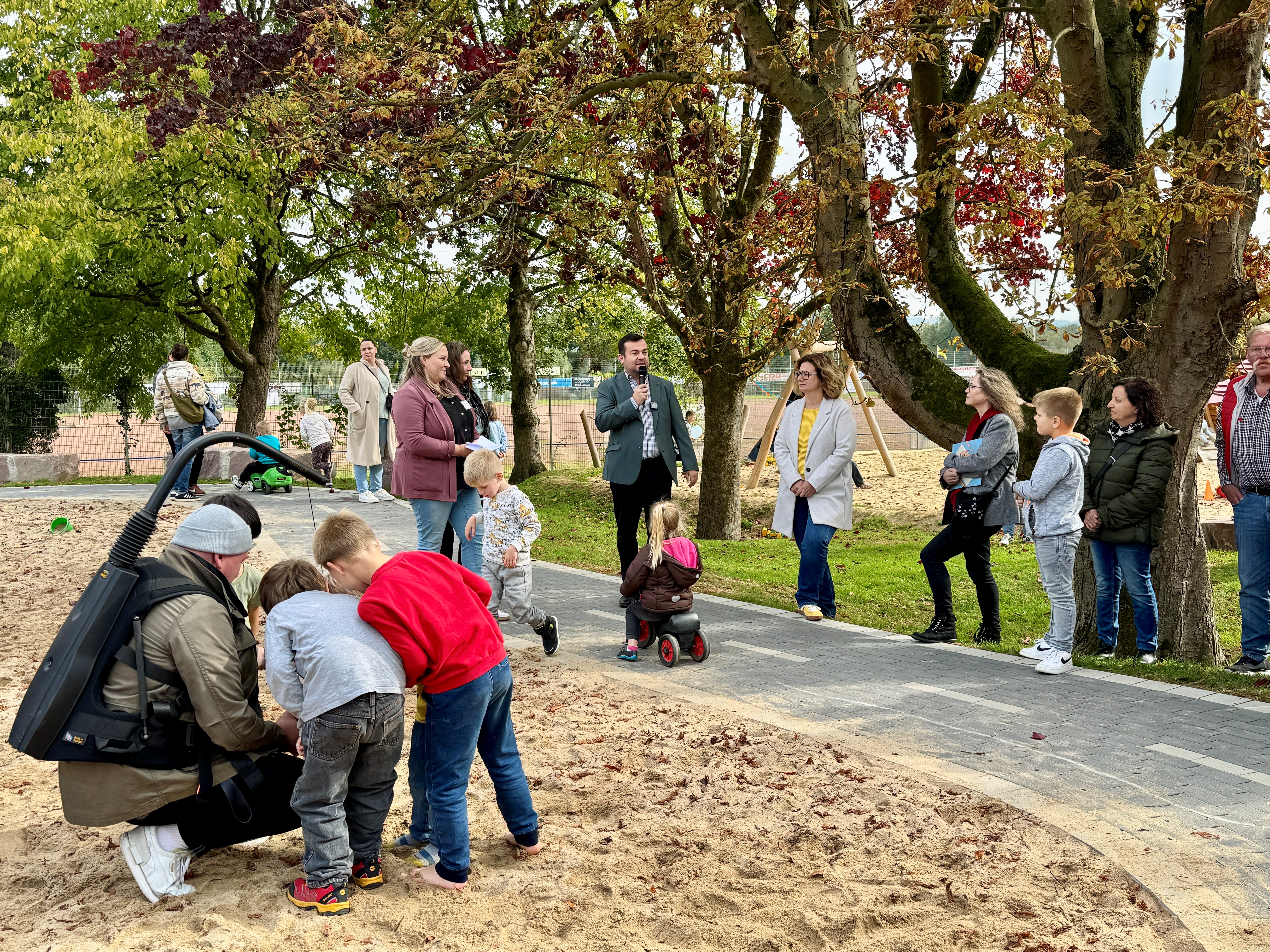 Bürgermeister Dimitrios Axourgos eröffnete die Feier gemeinsam mit Kita-Leiterin Eva Waldheim und Stephanie Barg, Leiterin des Lebenszentrums Königsborn. Anschließend weihte er den neuen Mehrzweckraum ein, der künftig als Treffpunkt für Senior*innen und die gesamte Wandhofener Gemeinschaft dient. „Die Kita Wandhofen steht für gelebte Gemeinschaft, Inklusion und Nachhaltigkeit – ein Gewinn für alle Generationen in Schwerte“, betonte das Stadtoberhaupt.