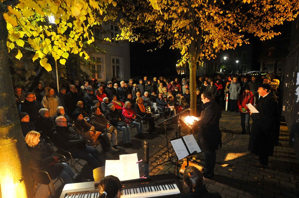 Deutlich mehr Menschen als in den vergangenen Jahren hatten an der Gedenkfeier teilgenommen. Möglicherweise lag das auch an Marc Kaiser. Der Schwerter hatte für Samstag zum Gedenken an das Judenpogrom 1938 eine Kundgebung und Demonstration organisiert, die um 18.30 Uhr in der Hüsingstraße startete. Es war die zweite Kundgebung nach dem Anschlag auf die Synagoge in Halle.