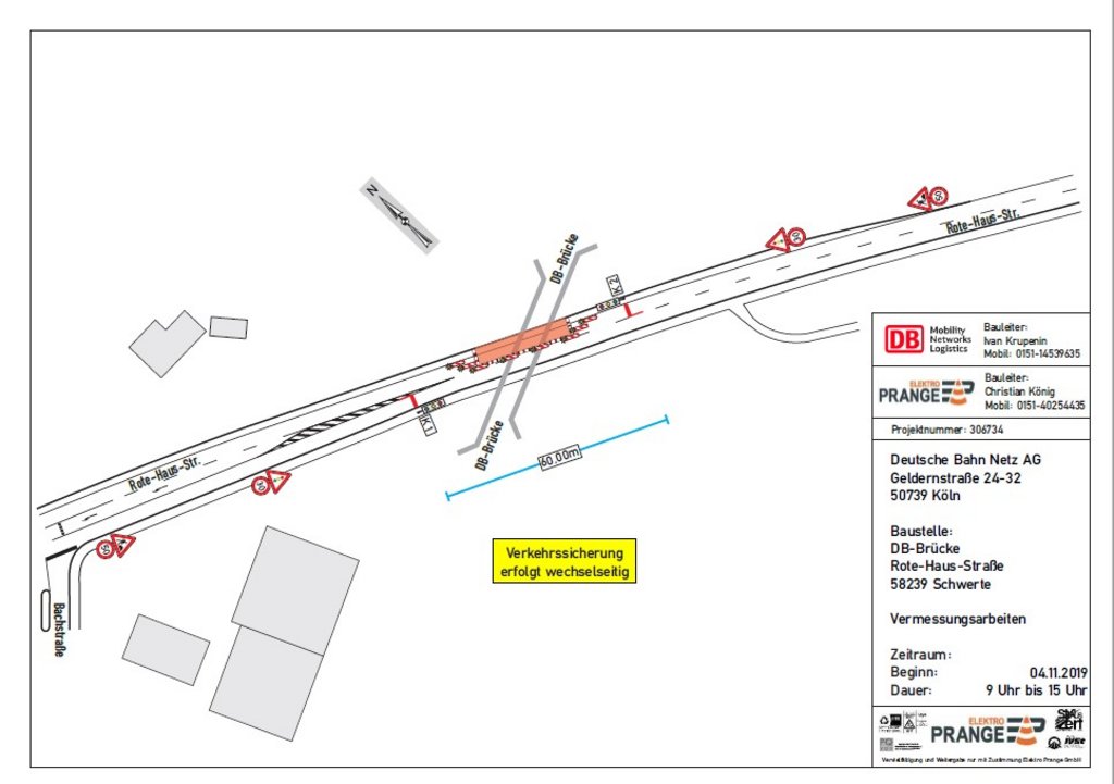 Die Rote-Haus-Straße muss am Montag, 4. November, von 9 bis 15 Uhr wegen Vermessungsarbeiten an der Bahnbrücke halbseitig gesperrt werden.
