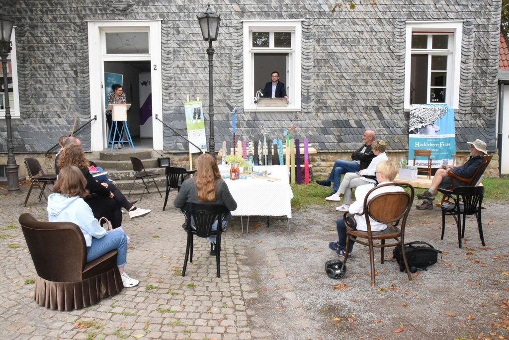 Mitgemacht hat auch Schwertes Bürgermeister Dimitrios Axourgos. Aus einem Fenster des Wuckenhofs heraus las er die Präambel der Menschenrechte. Vor dem historischen Gebäude hatte Menschen da Platz genommen, wo die KuWeBe-Mitarbeiterin Andrea Reinecke dreimal in der Woche ihr Lesefenster öffnet und wo normalerweise aus Werken des Schriftstellers Mark Twain gelesen wird. Sie alle haben die Artikel der Menschenrechte vorgelesen.