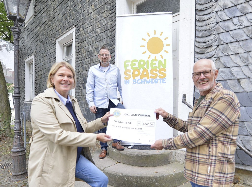 Kirsten Jung, Leiterin der städtischen Kinder- und Jugendarbeit, und Jugendpfleger Christian Mogk nahmen die Spende entgegen. „Es liegt uns am Herzen, Projekte zu fördern, die das Wohl von Kindern und Jugendlichen im Fokus haben“, sagt Ulrich Walter, Activity-Beauftragter des Lions Clubs Schwerte. „Das Geld hilft uns, das breite Angebot des Ferienspaßes aufrechtzuerhalten“, erklärt Kirsten Jung. Und Christian Mogk ergänzt: „So können wir Kindern unvergessliche Ferienmomente ermöglichen“.