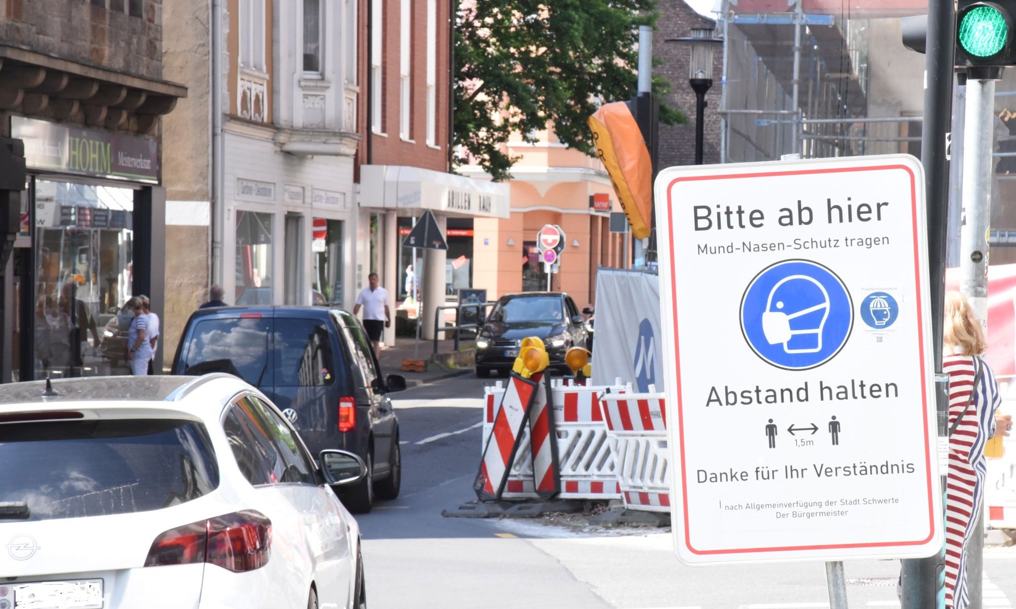 Allerdings ist die Aufhebung der seit November 2020 geltenden Allgemeinverfügung noch nicht das Ende der Maskenpflicht in den Innenstädten. „Das Land NRW muss hier noch nachziehen“, so Axourgos. Die aktuell gültige Coronaschutzverordnung des Landes Nordrhein-Westfalen ist eindeutig und regelt im Paragraphen 5 das Tragen einer Maske. Das ist vorgeschrieben auf Wochenmärkten und ähnlichen Verkaufsstellen im Außenbereich sowie im Umfeld von geöffneten Einzelhandelsgeschäften. Die Maskenpflicht gilt auf den Zuwegungen zu dem Geschäft innerhalb einer Entfernung von zehn Metern zum Eingang, auf dem Grundstück des Geschäftes sowie auf den zu dem Geschäft gehörenden Parkplatzflächen.
