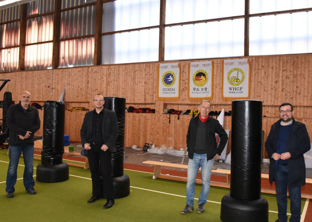„Es ist gut, das Vereine durch dieses Förderprogramm Anreize erhalten, ihre eigenen Anlagen durch Modernisierungen und Sanierungen zu sicheren und zeitgemäße Sportstätten zu machen“, hob Dimitrios Axourgos hervor, als er sich von Guido Böse, Mitglied im geschäftsführenden Vorstand der Budogemeinschaft, über die aktuellen Maßnahmen informieren ließ. Konkret sind das die Sanierung der beiden Giebelverglasungen sowie die Renovierung der Umkleidetrakte. „Mit den Mitteln aus diesem Förderprogramm können wir unseren Investitionsstau passgenau abbauen“, freut sich Guido Böse. „Ich danke dem Stadtsportverband für sein Engagement und der Stadt Schwerte für das Herstellen des Benehmens“.