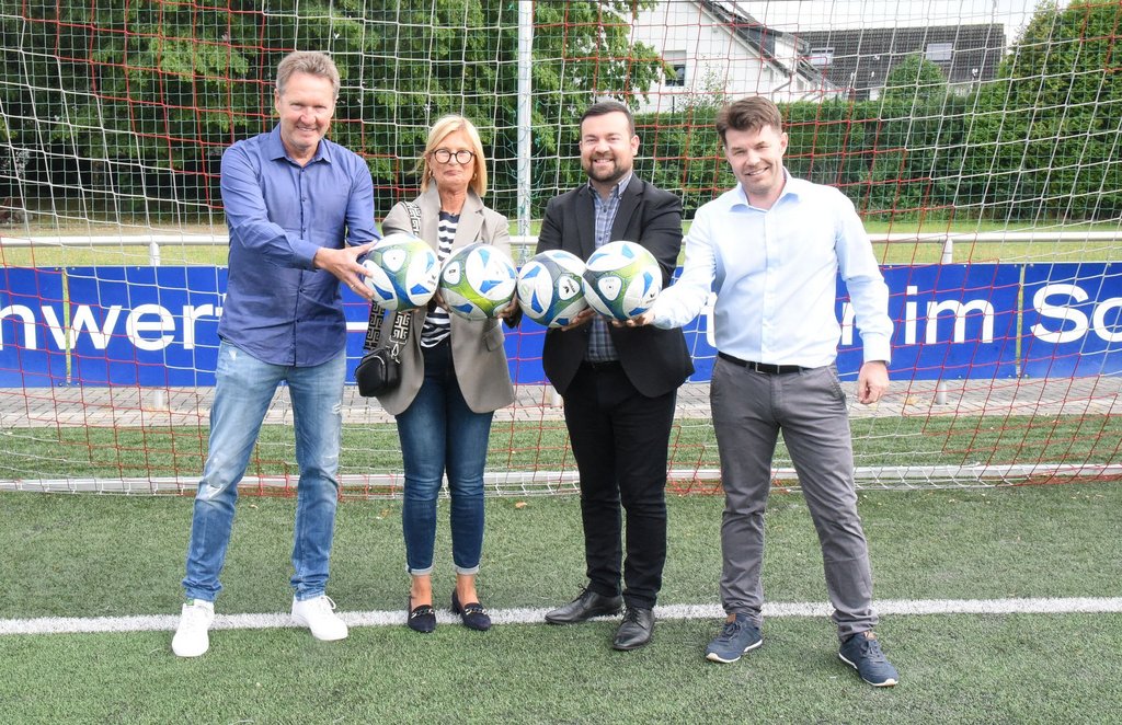 Gemeinsam mit Mechthild Kayser, stellvertretende Vorsitzende des Stadtsportverbandes Schwerte, machte sich das Stadtoberhaupt ein Bild von der Anschaffung und informierte zudem über den Stand der Baumaßnahmen am Platz. Bekanntlich entsteht auf dem Sportplatz ein neues Vereinsheim, das bisherige Vereinsheim soll zu einem Kabinentrakt ausgebaut werden. Die beiden Vereinsvorsitzenden Michael Faltin und Thorsten Rauball berichteten aus Sicht des Geisecker SV.