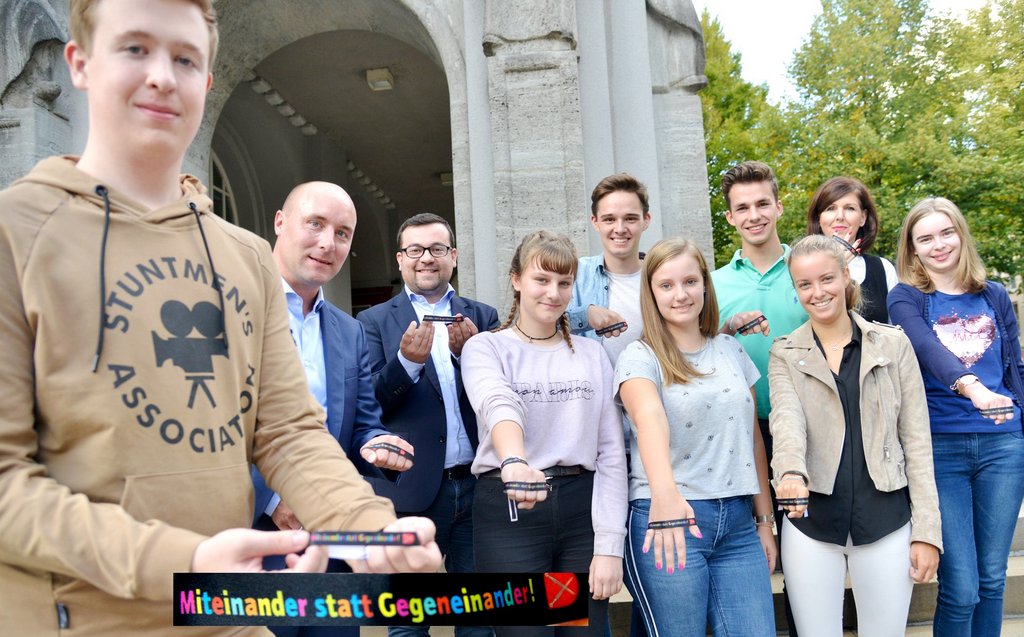 "Ich finde dieses Projekt auch deshalb spannend und ermutigend, weil Schü-ler*innen sagen, wir zeigen Haltung und sich so für Demokratie einsetzen", erklärte Philipp Halbach. "Eine demokratische Gesellschaft ist eine bunte Gesellschaft, die Vielfalt als etwas Wichtiges ansieht und dafür auch einsteht". Dimitrios Axourgos würdigte das Engagement des Unternehmers und seiner Referentin und bewertete die Aktion als "ein deutliches Bekenntnis für die Demokratie und für unsere tolerante und offene Stadt Ich finde es toll, dass diese Aktion von jungen Menschen kommt".