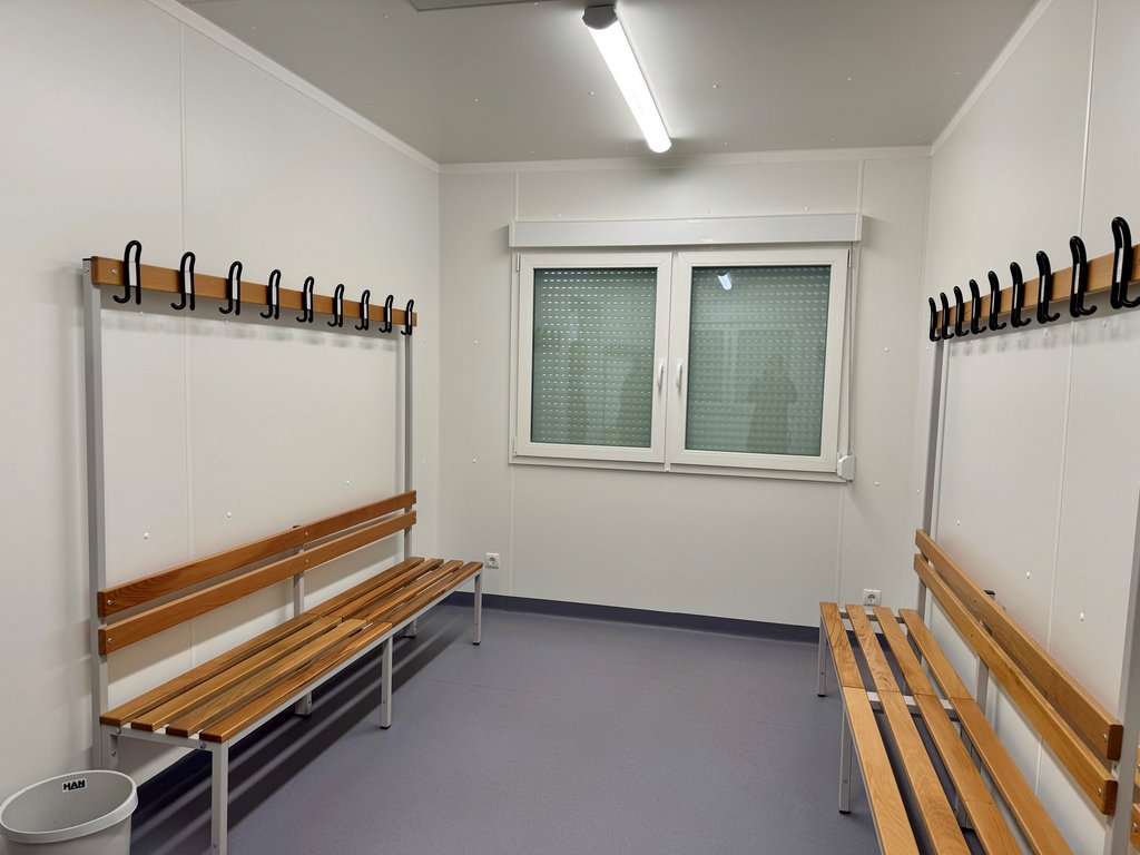 Mit dem Bau wurde im Sommer begonnen, seit Oktober ist die neue Anlage im Einsatz. Sie umfasst zwei großzügige Umkleideräume, die jeweils mit einem eigenen Duschbereich sowie einer WC-Anlage ausgestattet sind. Modern, hell und geräumig – die Räumlichkeiten lassen kaum vermuten, dass es sich eigentlich um Container handelt.