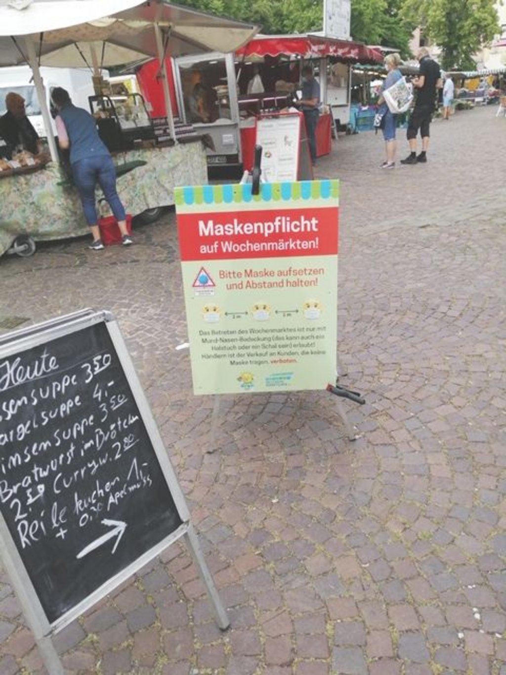 Das gilt insbesondere für Verkaufsstellen, also auch für den Wochenmarkt. Wer hier einkauft oder bummelt, ist verpflichtet, einen Mund-Nasenschutz zu tragen. Wer den Markt zu Zeiten des Wochenmarktes nur überquert, um Geschäfte, die VHS, die ansässige Gastronomie oder sein Zuhause zu erreichen, unterliegt dieser Verpflichtung nicht. Trotzdem: „Wir bitten alle, die zu Zeiten des Wochenmarktes über den Marktplatz gehen, einen geeigneten Mund-Nasenschutz zu tragen“, sagt Jenny Golombek. Die Stadt Schwerte kündigt schon für den nächsten Markttag am Mittwoch (17. Juni 2020) entsprechende Kontrollen an.