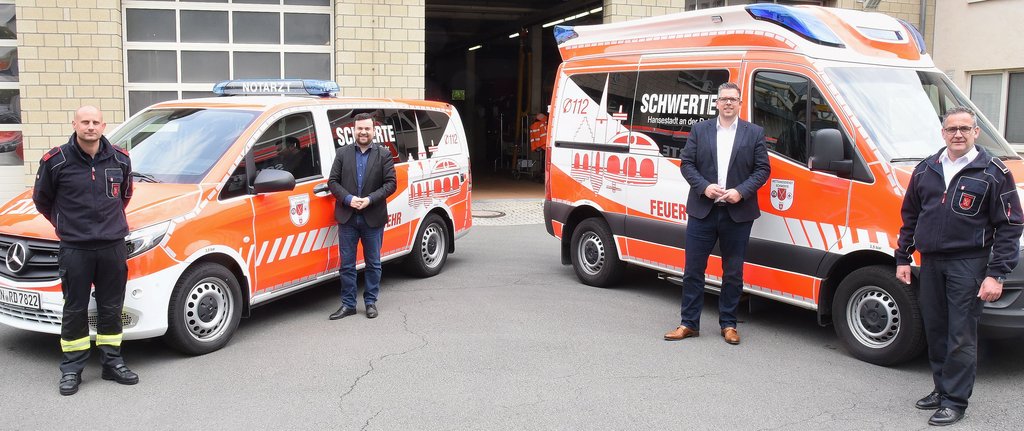 Die beiden neuen Fahrzeuge, ein Notarzteinsatzfahrzeug (NEF) und ein Krankentransportwagen (KTW), werden künftig einen erheblichen Anteil daran haben, dass der Schwerter Rettungsdienst seine Aufgaben weiterhin schnell, präzise und zuverlässig wahrnehmen kann. Dazu gehören lebensrettende Maßnahmen am Notfallort, die Herstellung der Transportfähigkeit und die sachgerechte Beförderung in ein Krankenhaus. Der Krankentransport hat die Aufgabe, Kranken oder Verletzten oder sonstigen hilfebedürftigen Personen, die keine Notfallpatienten sind, fachgerechte Hilfe zu leisten und sie unter Betreuung durch qualifiziertes Personal zu befördern.